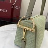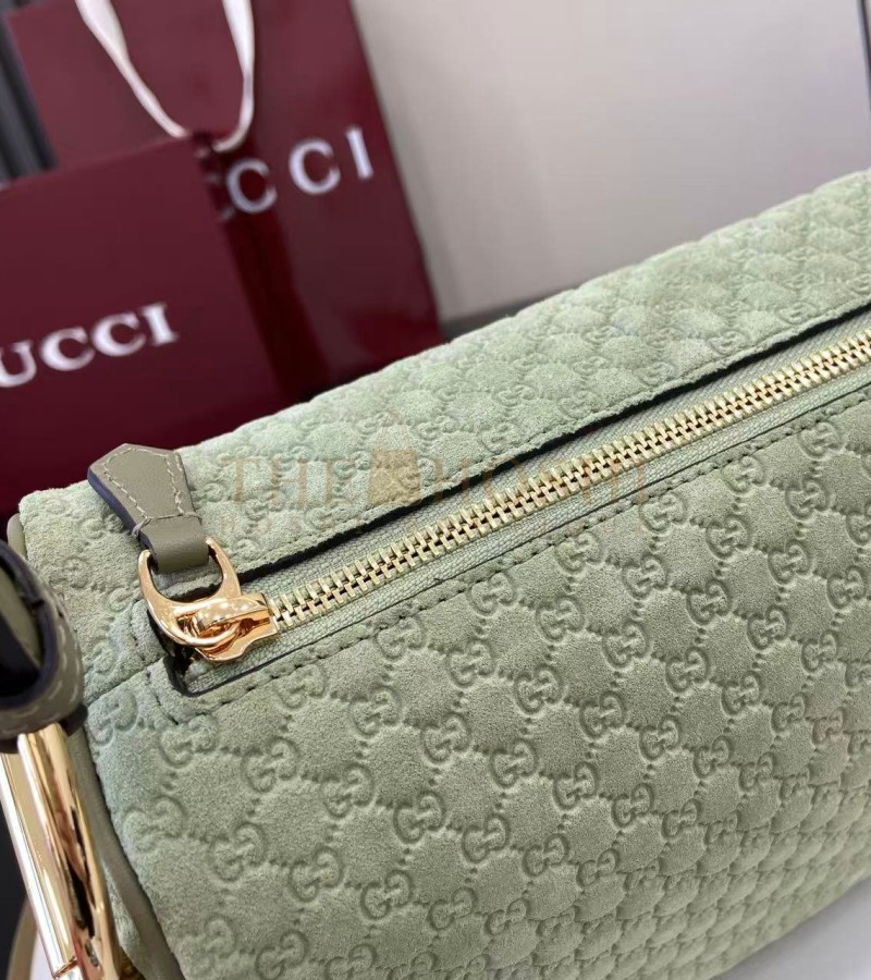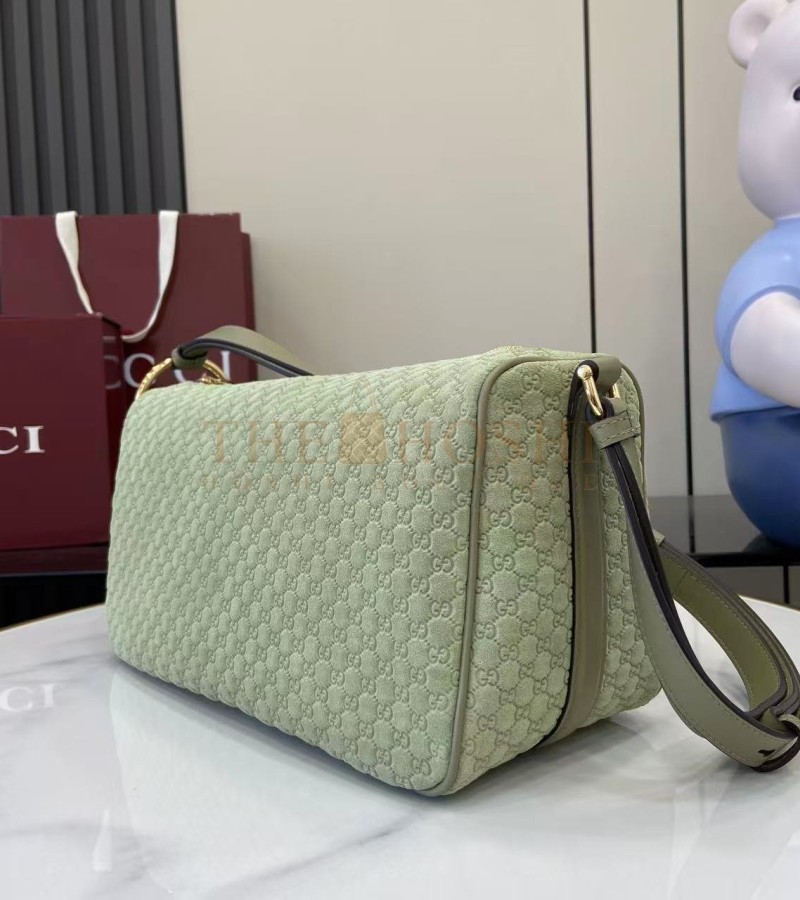 GUCCI HALF HORSEBIT SHOULDER BAG BROWN GG EMBOSSED SUEDE BROWN 31.5×17×12CM