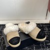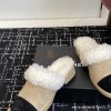 CHANEL SHEARLING LOGO SLIDES WOOL PLATFORM