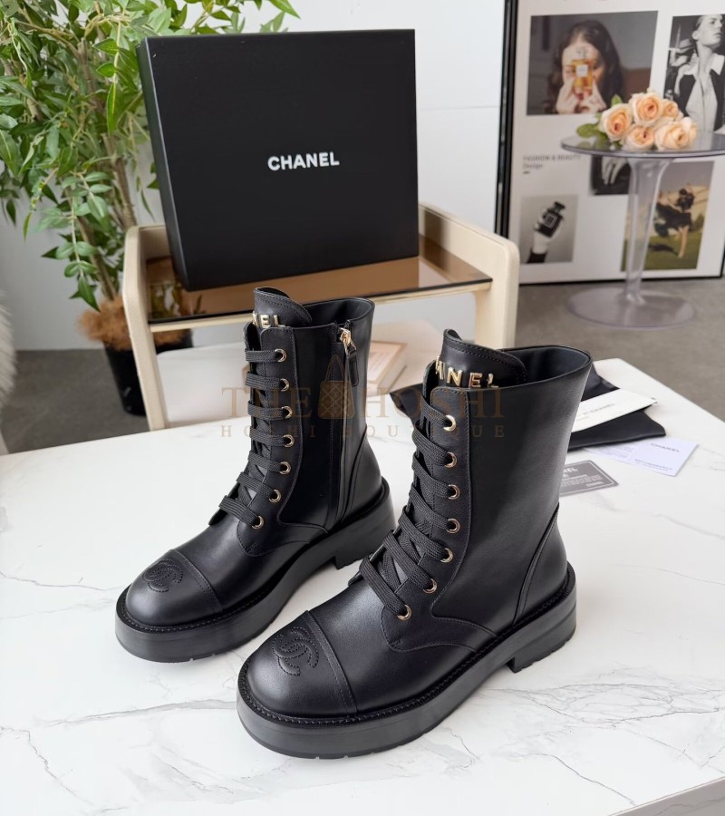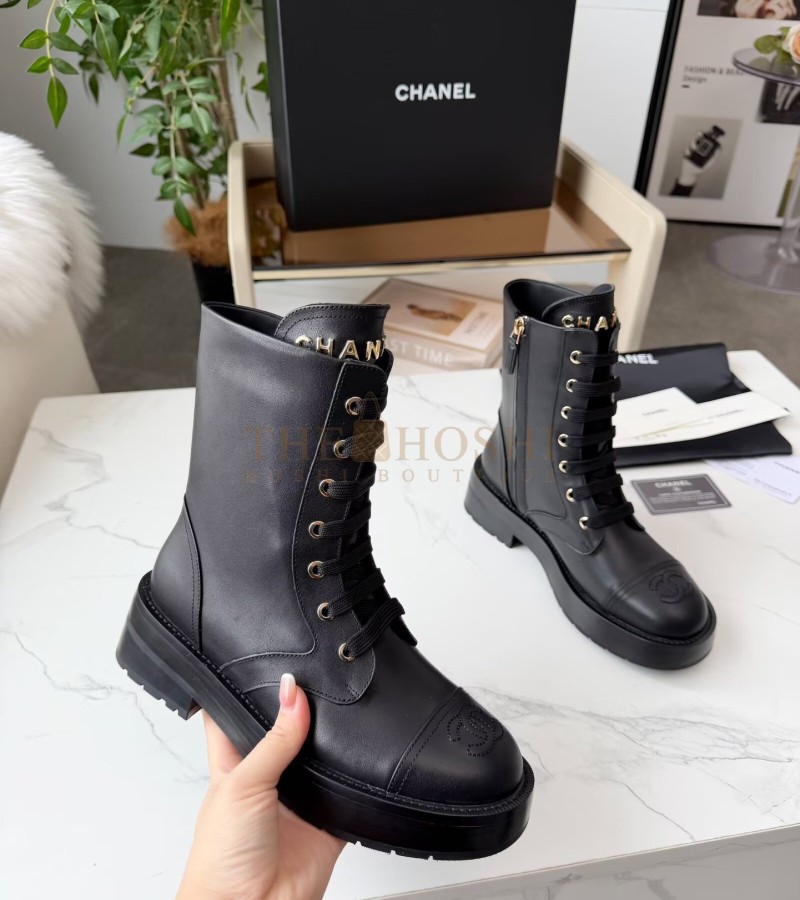 CHANEL LACE-UP FLATS LEATHER UPPER SIZE 35-42 BLACK MASTER QUALITY
