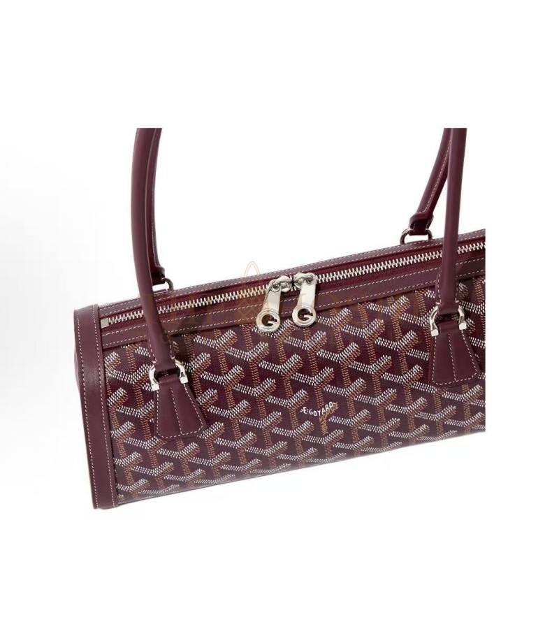 GOYARD COLLECTION BURGUNDY CANVAS LEATHER SHOULDER BAG 30*10.5*12CM MASTER QUALITY